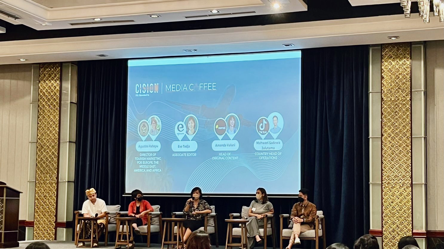 We invited four experienced speakers in the tourism industry joining us in the panel: Agustini Rahayu, Director of Tourism Marketing for Europe, Middle East, and Africa at the Ministry of Tourism and Creative Economy, Eve Tedja, Associate Editor of Epicure Magazine, Amanda Valani, Head of Narasi TV Original Content, and Mahwari Sadewa Jalutama, Country Head of Operations TikTok Indonesia. Besides sharing the latest trends and insights in the tourism industry, they also offered tips and best practices for our audience.