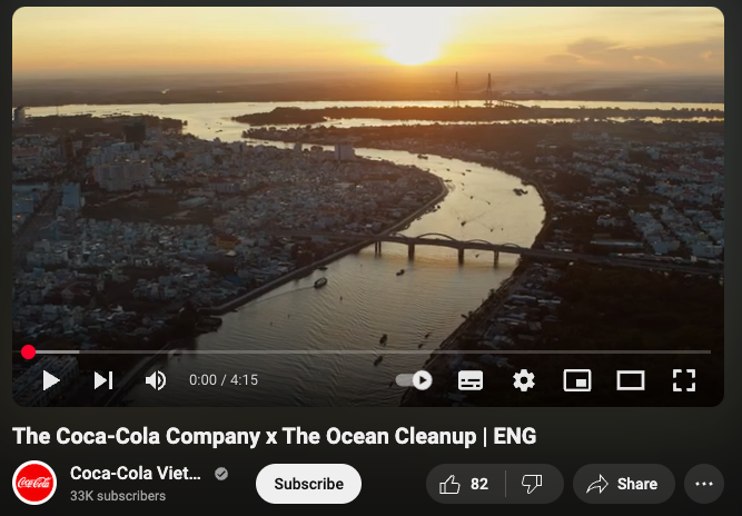PR Campaign: River Tales is a four-minute documentary produced by Coca-Cola about the Interceptor technology deployed in the Mekong Region. It raises public awareness on how negatively plastic pollution is impacting the Can Tho River and what they are trying to make a difference through technology and community action.