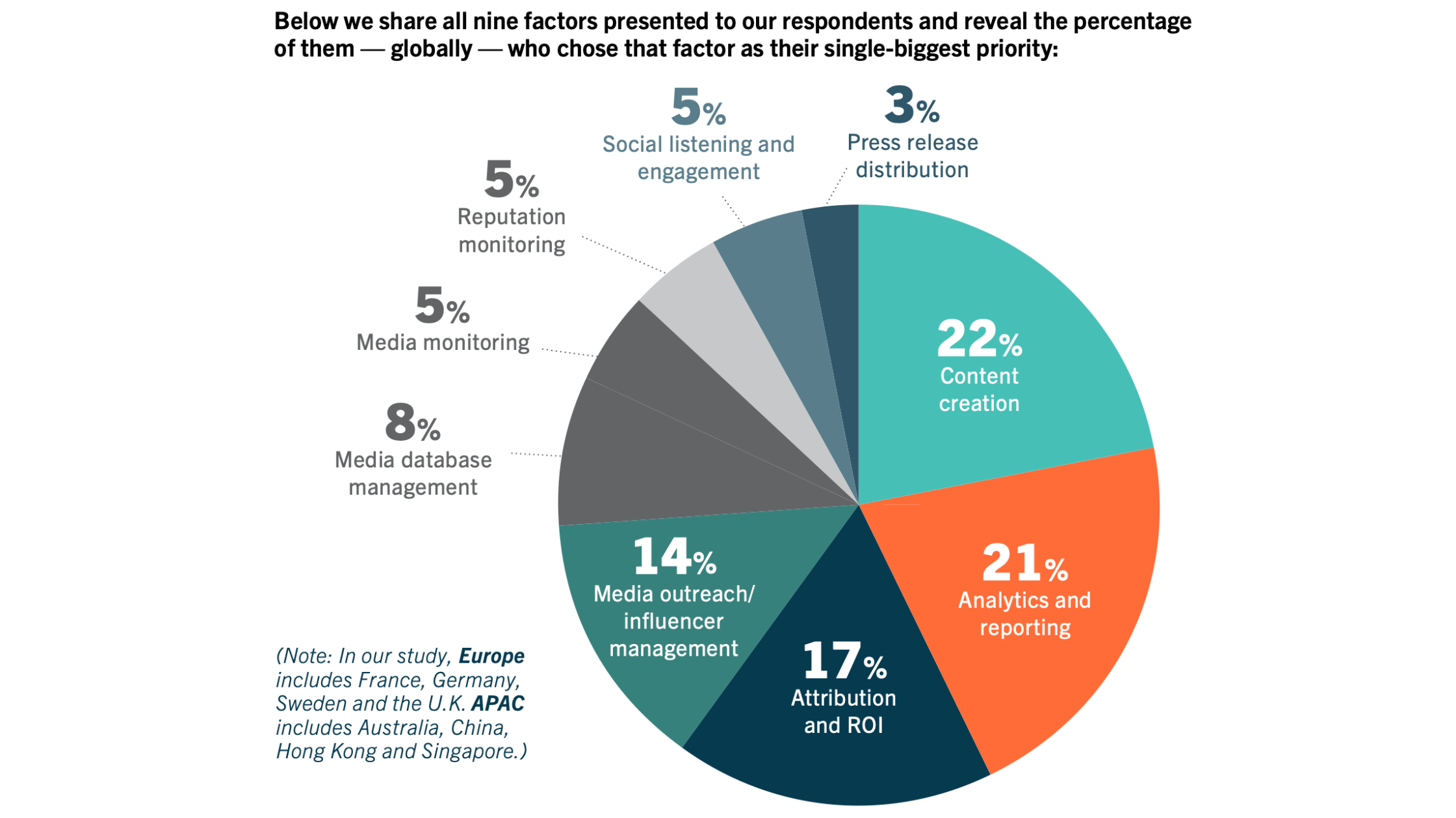 Global respondents were given 11 functions that use tech tools to boost their communication efforts, such as news/ media monitoring, press release distribution, reputation management and social listening. The top scorer was again content creation/ strategy at 25%, followed by data analysis/ insights at 24%. Indeed, content creation still upholds its title, but data analytics/ insights is just right behind it. Similarly in Figure 1, the same pattern could be picked up.