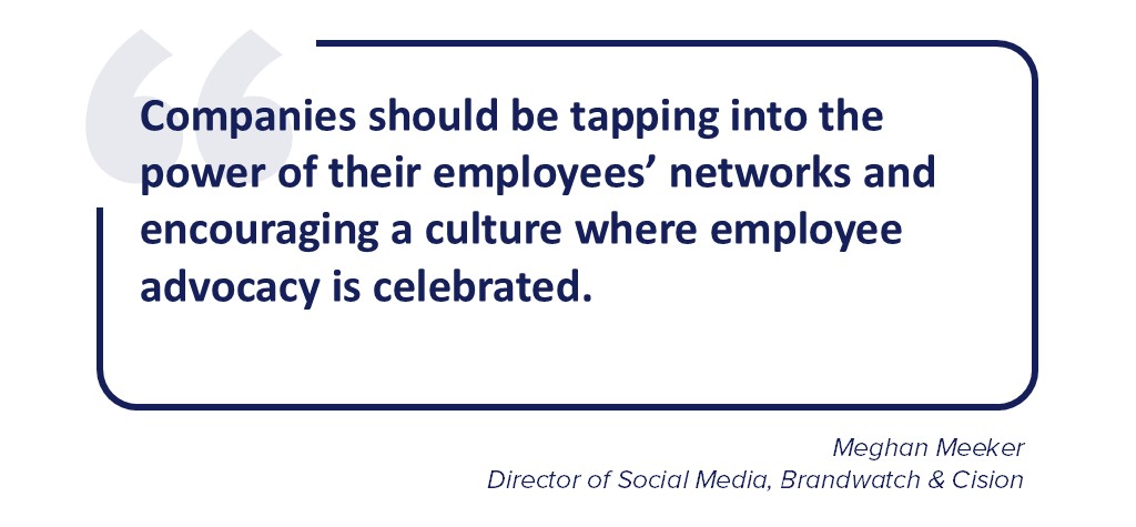 “Companies should be tapping into the power of their employees’ networks and encouraging a culture where employee advocacy is celebrated,” she notes. “Having a robust employee advocacy program turns your colleagues into powerful, relatable, and authentic influencers in their own right.”